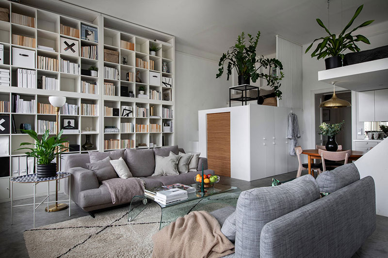 屋主人的品味从何体现?或许是满墙的书柜。