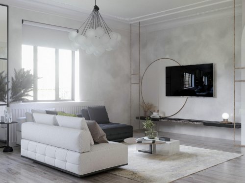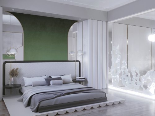 在客厅与餐厅休闲的地方都形成了灰色与绿色的撞色。