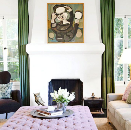 丁香色和绿色的搭配,不破坏绿色高级感的同时,给整个空间注入了一丝活泼的气氛。
