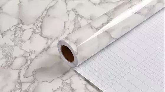 再来还有一种办法就是PVC波音片,它是一种贴膜,有各种各样的花色,比如木纹、纯色、大理石纹等等,可以直接贴在橱柜表面。