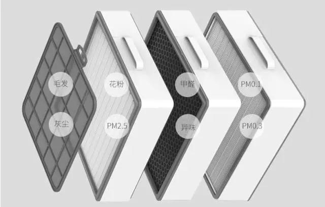 从上到下,第一层H13级HEPA滤网,第二层足足五公斤活性炭(能砸死人)的TVOC滤网,第三层底层基础滤网。